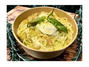 | Pistaches | Sauce au pesto de pistaches, tomates fraîches, burrata |